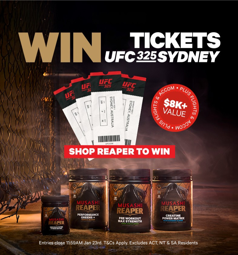 One prize of transport to Sydney (if the prizewinner lives outside of Sydney) and one night’s accommodation (for up to four people) in Sydney plus four tickets to UFC 325 in Sydney on Sunday 1 February 2026.